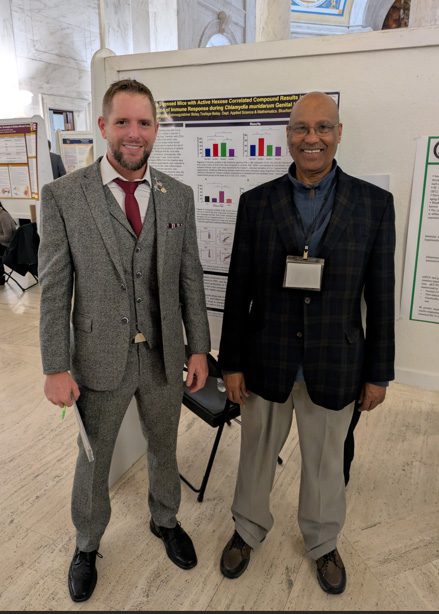 Research posters representing the work of Jaida Rodenberry and Damiesha Greene, students in the laboratory of Dr. Tesfaye Belay, were presented during the event’s poster session at the West Virginia State Capitol. Although neither student was able to attend due to personal reasons, Belay presented their research on their behalf.